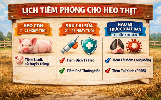 Heo thịt thường được nuôi trong thời gian ngắn, vì vậy lịch tiêm phòng cần tập trung vào các bệnh phổ biến và có nguy cơ cao trong giai đoạn tăng trưởng.