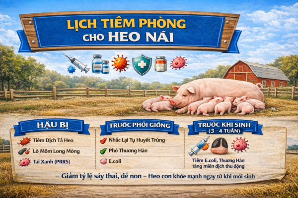 Xây dựng và tuân thủ lịch tiêm phòng chuẩn cho heo thịt – heo nái là nền tảng quan trọng trong chăn nuôi bền vững. Đây không chỉ là biện pháp phòng bệnh chủ động mà còn giúp người chăn nuôi giảm rủi ro, ổn định sản xuất và nâng cao hiệu quả kinh tế lâu dài.
